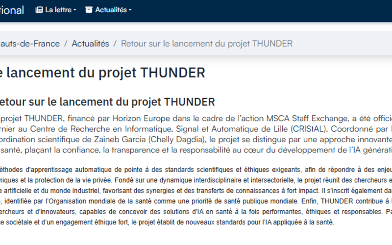 📢 THUNDER – MSCA Staff Exchange highlighted in the CNRS newsletter! 🧠🔬 …
